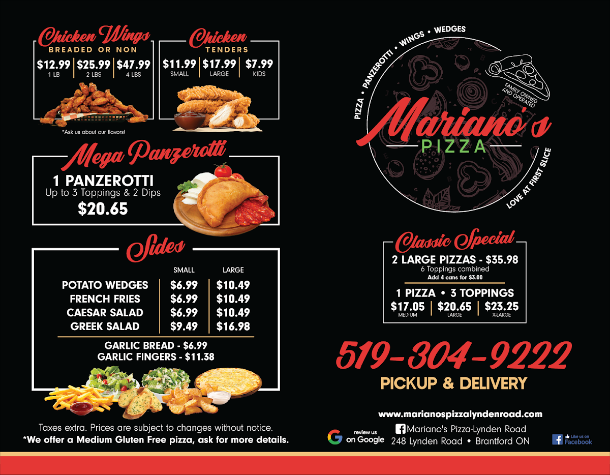 Welcome to Mariano's Pizza, a hidden gem located at 248 Lynden Rd in Brantford, Ontario. Known for their mouth-watering specialty pizzas and delicious combos, Mariano's Pizza is a must-visit for any pizza lover.